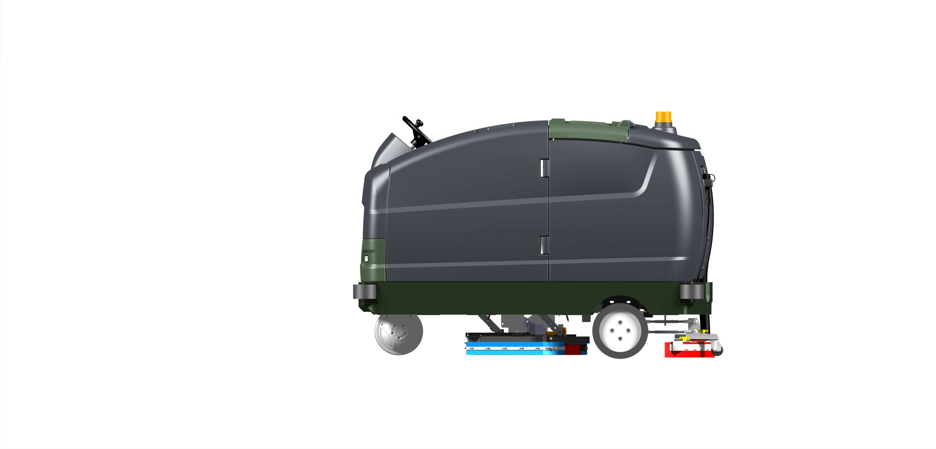 Les deux brosses disque de 21’’ offrent une pression constante pour nettoyer efficacement les surfaces en béton, époxy, vinyle et céramique. La raclette large de 1 380 mm assure un séchage sans traces pour un environnement plus sécuritaire.